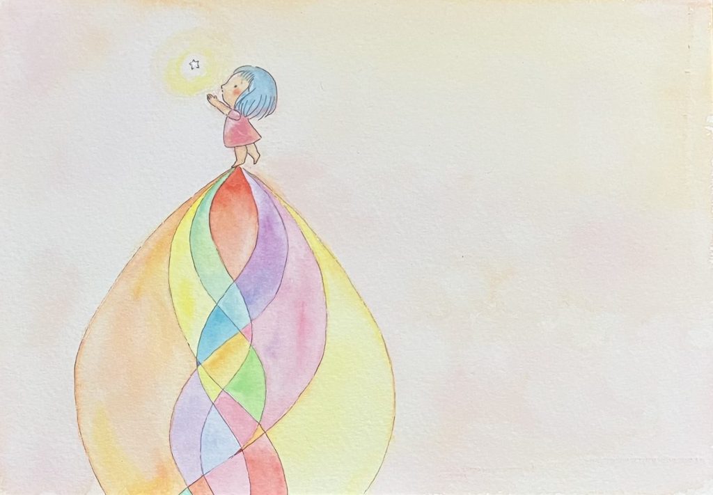 そこは虹がかかって、かみさまみたいな宇宙みたいな存在ともつながっていて、、、。